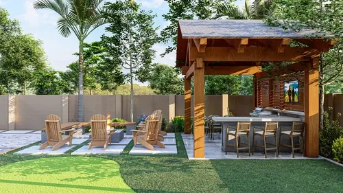 Absolutely — we specialize in custom designs that include built-in seating, kitchens, fire features, and integrated lighting for year-round use.